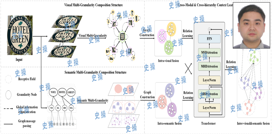 Since November 2023, research has been conducted on scene text detection and recognition methods based on a multimodal framework. To address the issue that current multimodal approaches typically use a single-granularity feature fusion strategy, which fails to fully leverage prior contextual information, a Multi-Granularity Visual Semantic Interactive Fusion Network (MGN-Net) has been proposed. This network includes: (1) a Visual Semantic Multi-Granularity Feature Extraction Network (VSMN); and (2) a Multi-Granularity Graph Fusion Learning Network (MGFN).